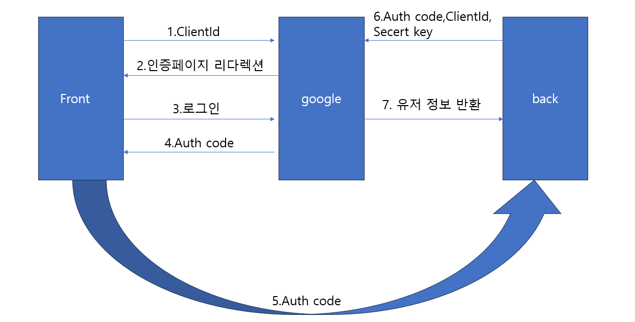 - 프론트엔드 애플리케이션은 이 인증 코드를 캡처하고 백엔드 서버로 전송합니다.