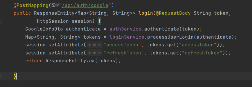 - 세션에 토큰 저장: 인증 과정에서 발급받은 토큰을 서버의 세션에 저장합니다. 이는 사용자의 인증 정보를 유지하는 데 사용됩니다.