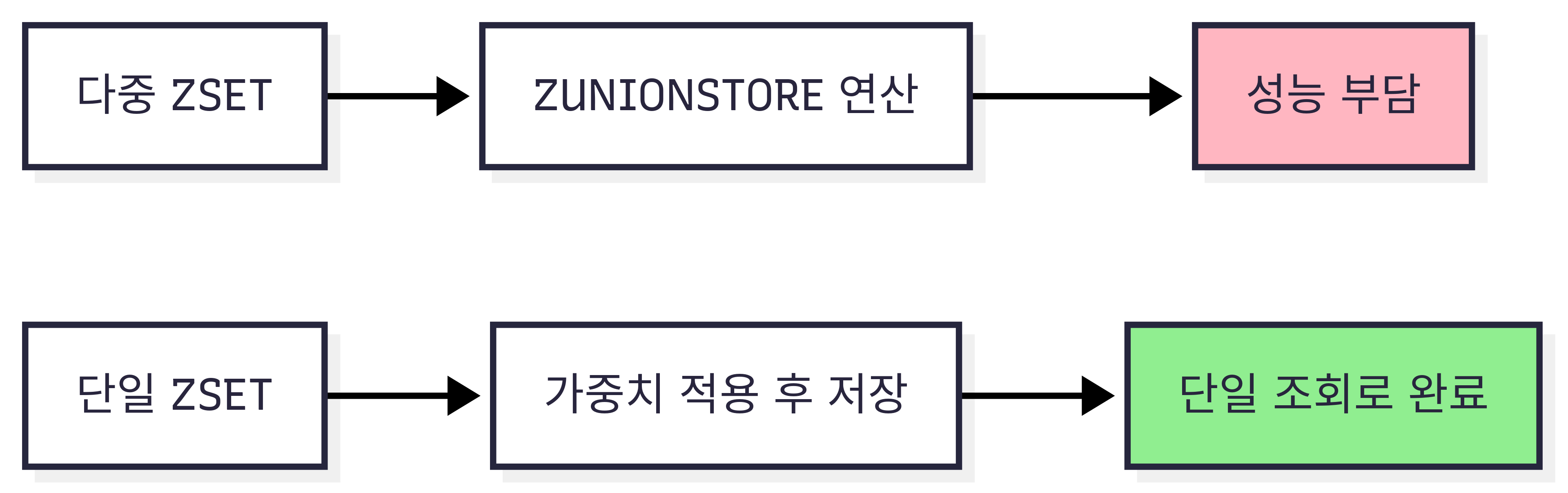 - ZUNIONSTORE 연산 제거 → 성능 향상